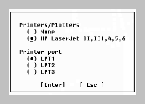 and then from the upper group of the dialog box choose either 'None' or 'HP LaserJet II, III, 4, 5, 6' (Fig. 2.9.1).