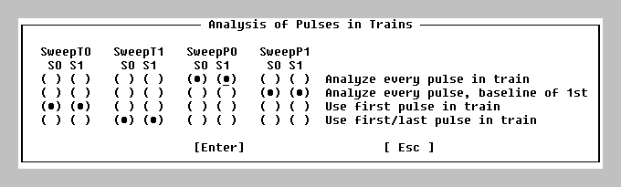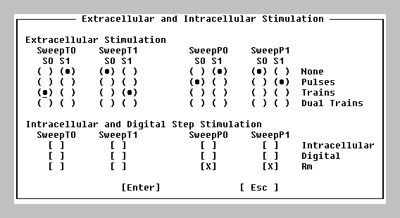 | ( ) | P0 or P1 Sweeps causes a slow repetitive generation of either Pulse P0 Sweeps or Pulse P1 Sweeps with simultaneous stimulation and acquisition. |