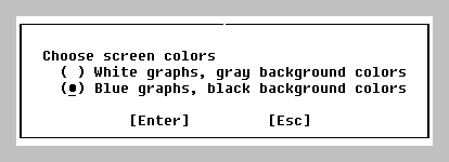 The color scheme can be altered by opening the Choose screen colors dialog box (Fig. 5.6.2.1.) by using the Options menu command (Fig. 3.4.4): |