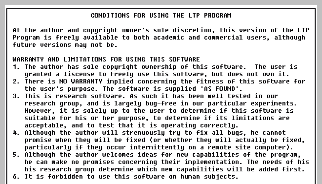 Help -> Conditions for using the LTP Program |