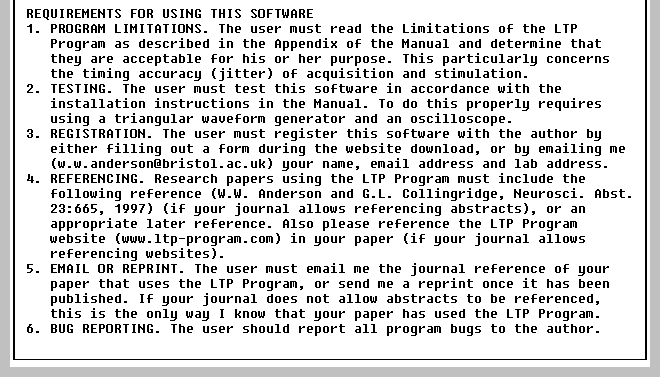 Conditions for Using the 'LTP' Program (Fig. 5.6.4) is now available by using the Help menu command ( (Fig. 3.4.7): |