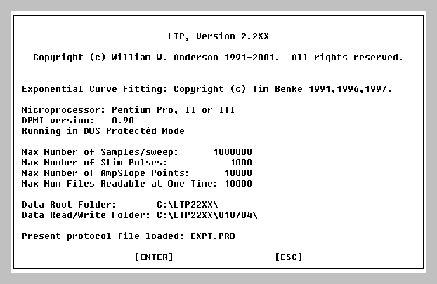 Normally when running an LTP experiment and acquiring data in sweeps of 50 ms to 2 sec, you don't want to stop the acquisition midway through the sweep, and when you press a key during a sweep you just want to process it normally. However, when acquiring data in longer sweeps, say 10 sec and above (such as when acquiring electrographic seizures during kindling studies), you may want to interrupt the sweep by hitting a key.