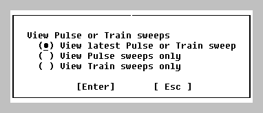 Use this dialog box to set whether to view latest Pulse or Train Sweep (default), Pulse Sweeps only, or Train Sweeps only.
