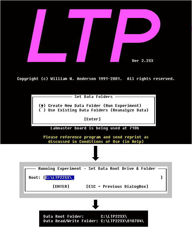 When this is done, the data folder is changed from C:\ltp22XX\010704 to the newly created data folder C:\ltp22XX\010704B (Fig. 2.5.2.2). Up to 26 data folders (e.g. up to C:\ltp22XX\010704Z) can be AutoCreated in this manner.