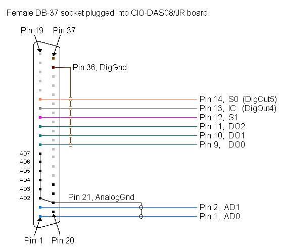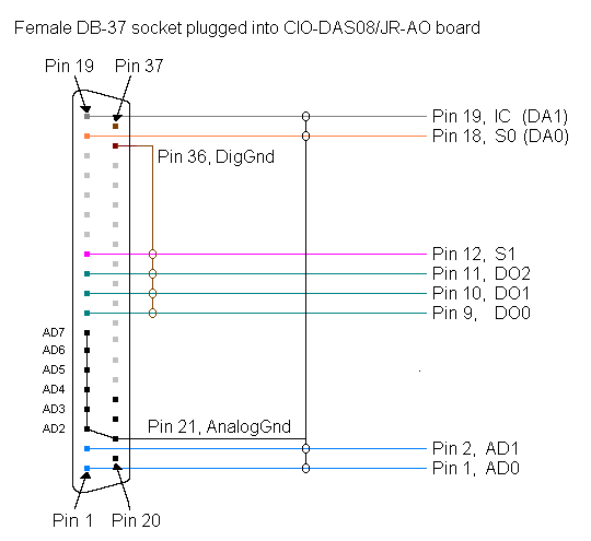 Alternatively, particularly if you are using the DAS08/JR board (without the analog outputs), use the -5 to + 5 volt square wave input from an external waveform generator to test AD channel crosstalk.