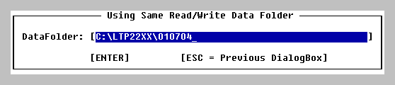 Choosing �Using Same Read/Write Data Folder� allows you to set the Read/Write data drive and data folder by presenting the �Using Same Read/Write Data Folder� dialog box in Fig 2.5.3.2. Changing this dialog box can set the Read/Write data folder say back to the original C:\LTP22XX\010704 data folder.