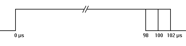 | Fig. 2.9.2. 4 usec jitter (+/- 2 usec) on a train of 100 usec S0 Pulses. |