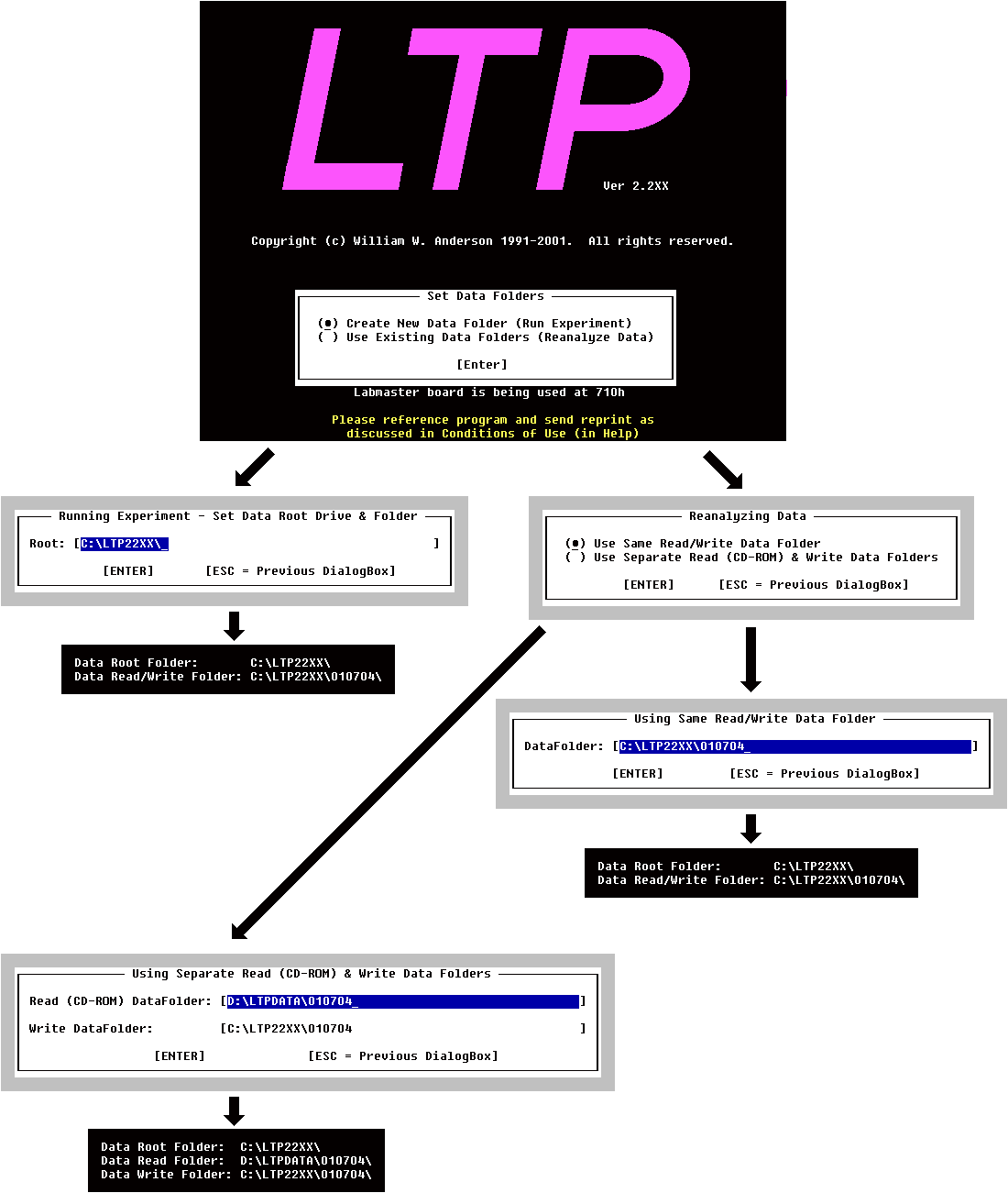 Fig. 6.1. The Dialog boxes encountered when starting the LTP Program to reanalyze data.