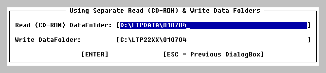 D:\LTPDATA\010704 on the read-only CD-ROM, and the Write data drive and folder